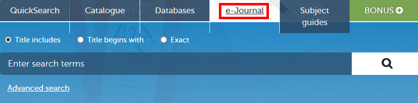 Select the e-Journal titles tab from the Library homepage.