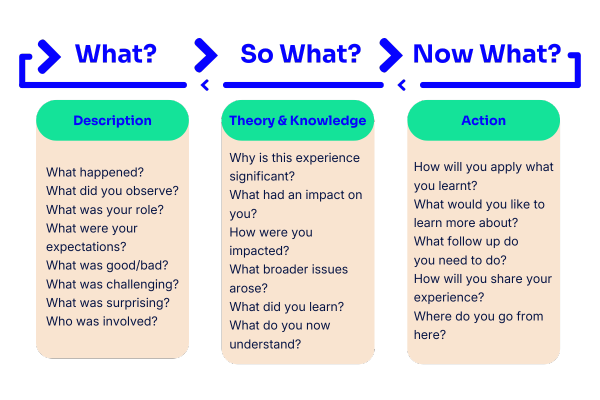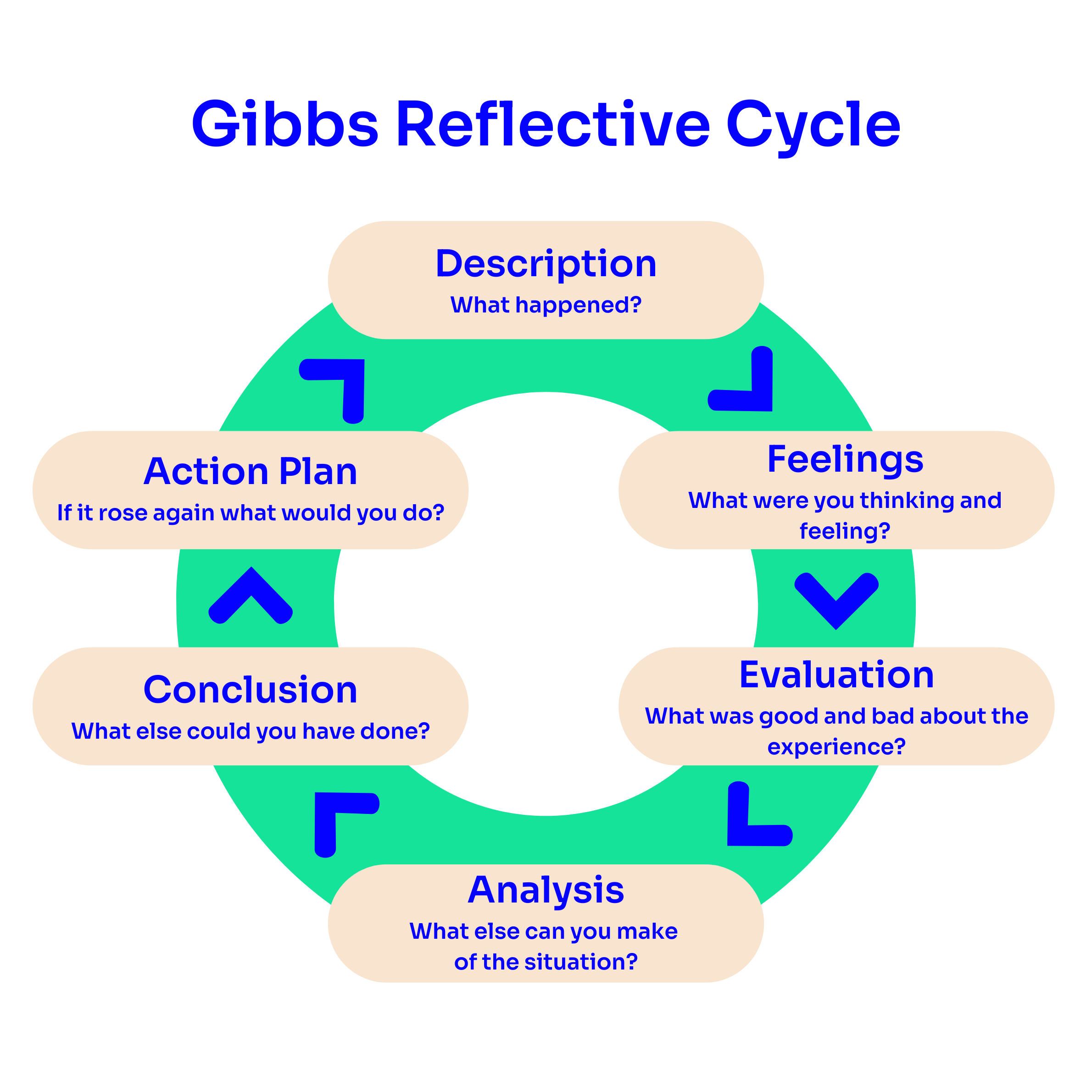 One of the more common tools is Gibbs's Reflective Cycle and is a common framework for reflecting on critical incidences.