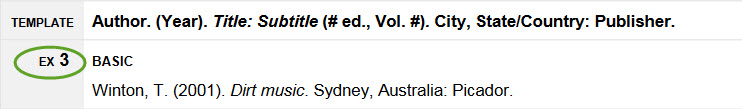 screenshot of Study Skills pageThe Study Skills website has various examples of APA, Chicago/Turabian and MLA in a nicely presented format.